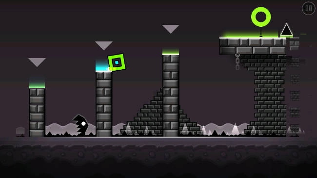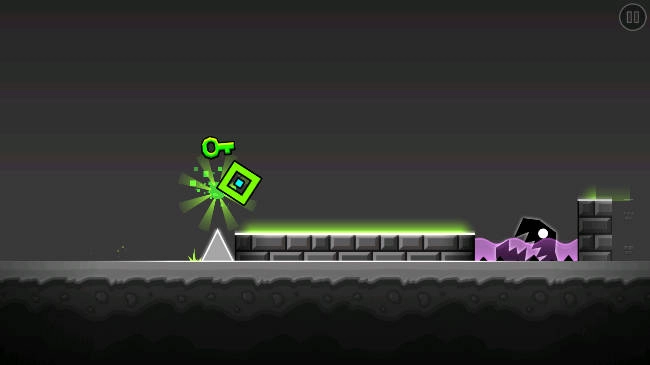 - 控制几何方块跳跃,避开前方的障碍物。