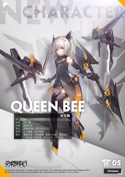 无论面对多少层数据加密,任何阻碍在她眼中都不堪一击——身为黑客出身的第五分队队长,女王蜂尽管年纪不大,却能在自己擅长的领域里流露出远超常人的自信与淡定。她深谙电子战的各种技巧,总能在对敌人发起攻击的同时植入干扰程序,不费吹灰之力就瓦解掉敌方的阵型和攻势。