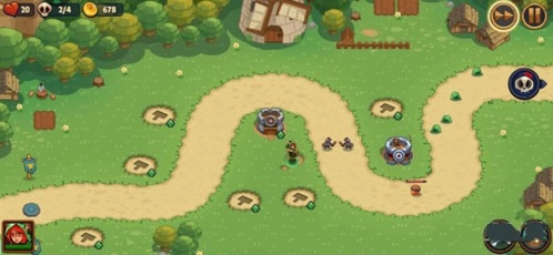 玩这款游戏时,要留意右上角的三个图标:第一个爱心图标显示的是能通过路径抵达终点的敌人数量上限;第二个是敌人的波次标识,像“2/4”就表示当前已刷新两波敌人,后续还有两波即将出现;第三个是金币图标,这些金币仅限本局游戏内使用,可用于购买防御塔或对已有塔进行升级。此外,处于草坪区域的英雄具备自由移动的能力,既能配合防御塔一同攻击敌人,也能去攻击那些防御塔射程无法覆盖到的位置。
