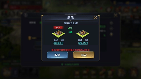成功占领城池后,玩家便能迁移过去,切换到更高级的主城。