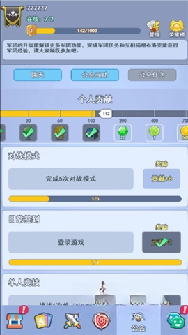 公会功能在第五栏,你可以创建或者加入公会。该模块里的内容有公会ID/头像、公会等级、公会管理、公会荣耀榜、公会聊天/互助以及任务等。完成公会任务可以获得金币、钻石和宝箱的奖励,公会互助功能能够让玩家之间交换布洛克。