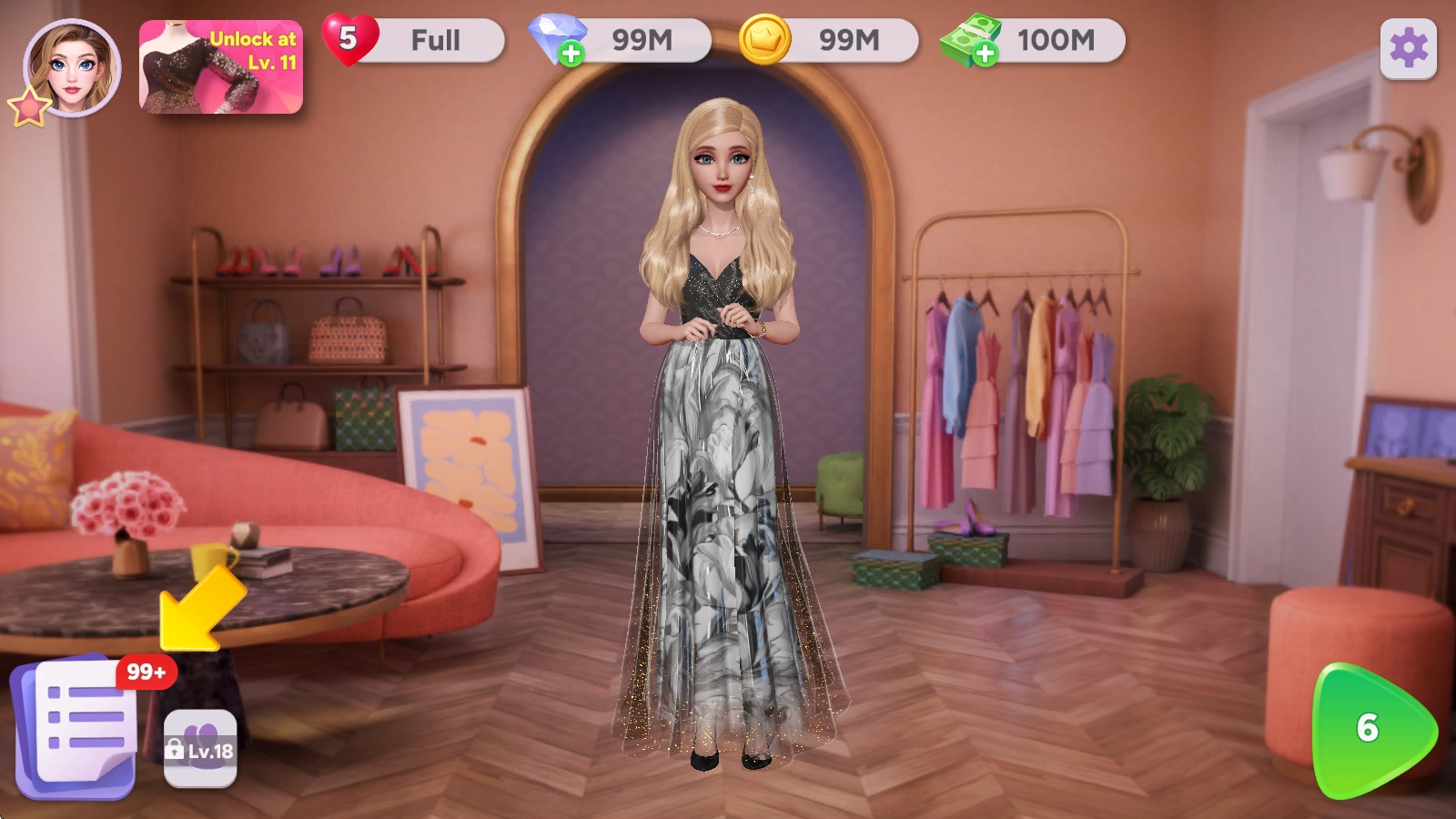 游戏里有超过1000种服装可供挑选,你可以自由搭配,为角色打造出能让人眼前一亮的高端礼服。