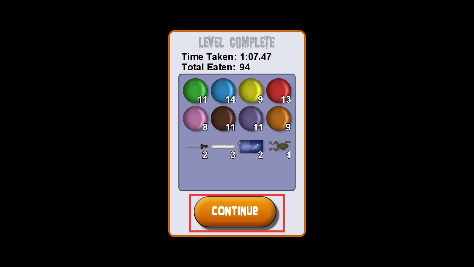 4、关卡结束后,会出现统计界面,此时点击【CONTINUE】即可开启下一关,然后就可以继续去吞噬更多东西啦。