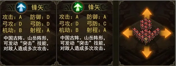 锋矢阵具备“摧锋”和“连攻”的特性,姜维正在研习这套阵法,选择连攻的玩法体验也相当不错。考虑到当前攻击力尚有提升余地,建议到中期阶段再采用这套阵形的玩法策略。