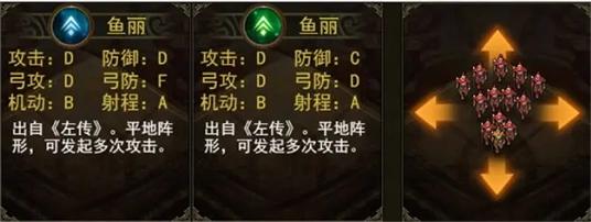鱼丽阵是姜维前期智力型武将玩法的首选阵形,这源于他96的智力值。该阵能使目标进入“疲兵”状态,堪称姜维的主力阵形。