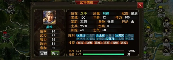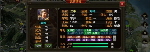 偃月阵:自带骁勇技能的姜维,在获得“叱咤”技能后,足以担任蜀汉后期的单挑主力。