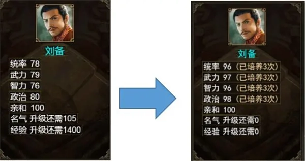 培养顺序为统率94——使用1次高级统率,借助灵光一闪直接达到最大值。