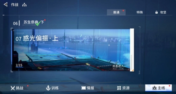 进入游戏大厅后,点击“作战”选项即可进入游戏章节选择界面。