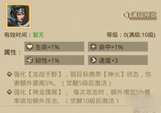 神赵云在游戏中觉醒后会强化一技能,当使用一技能“龙战于野”时,若敌方处于神火状态,将额外提升百分之五的伤害;同时,强化后的三技能“神龙摆尾”在释放时,触发额外追击的几率会增加百分之五。