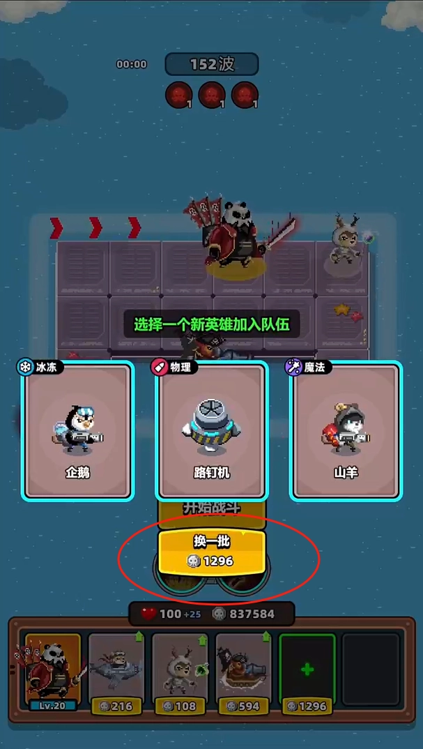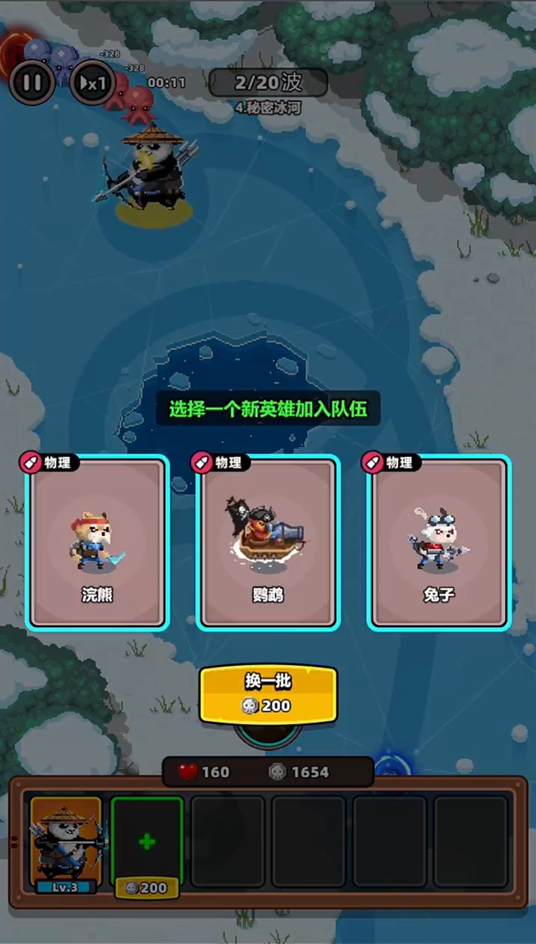 击败敌人获取银币,通过银币选择新的英雄加入战场。