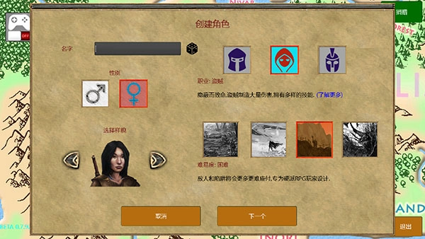 3、此刻需创建角色,对名字、样貌、职业以及难易度进行选择。若想了解职业与难易度的选择,可查看下方的《放逐王国》攻略信息。