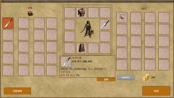 8、可查看自身装备、背包以及箱子内的物品,点击即可获取。