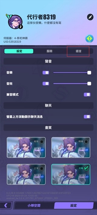 玩家可在这里更改游戏画质,然后点击语言;