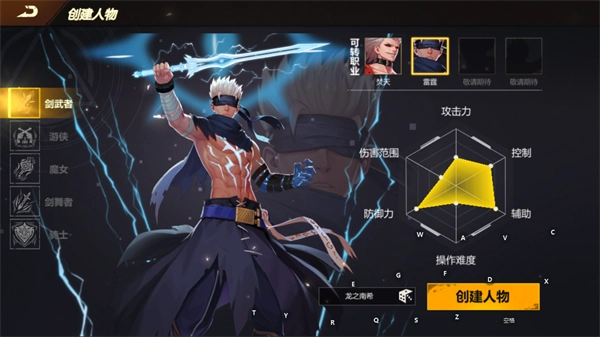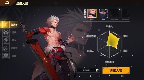 在《使命先锋》当前版本里,总共开放了5个角色,它们分别是:剑武者、游侠、魔女、骑士和剑舞者。