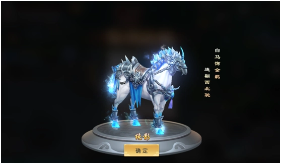 玩家完成LV10的主线任务后,即可获得专属的第一匹坐骑——白毫汗马“绝影”。