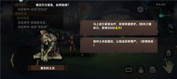 在路途当中遇到重伤的士兵,系统会给你提供两个选项,两个选择各有利弊,由你自行抉择。