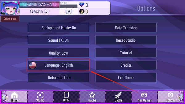 1. 开启加查薰衣草游戏,点击右下角的“Options”设置选项。