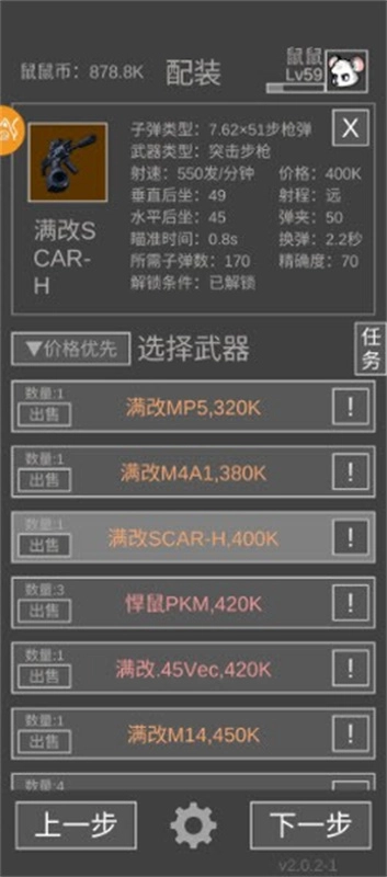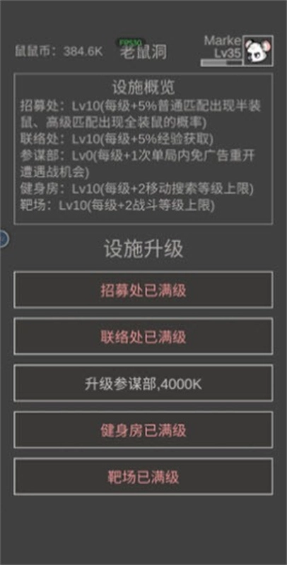 老鼠大冒险游戏是一款趣味十足的文字类生存夺金游戏,又名鼠鼠模拟器。游戏高度还原了类似《逃离塔科夫》的场景设定,玩家可对枪械、护甲、投掷物及各类装备道具进行升级,以此提升自身实力并积累财富。游戏内的多数场景以文字形式呈现,你还能自由调整战斗与移动方式,目标就是成为最强大的鼠鼠!
