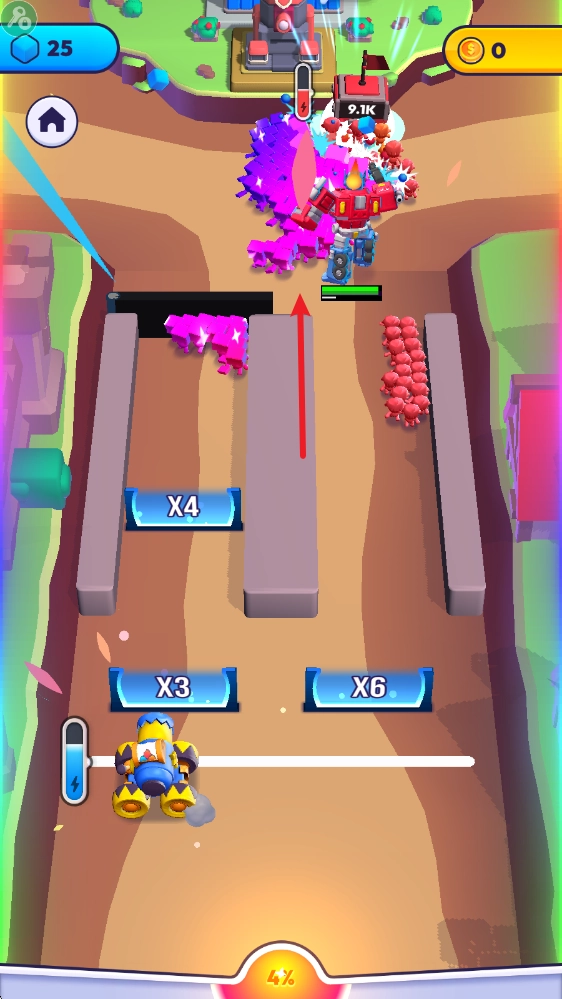 另外,击败敌人还能积累大招的能量,等能量攒满后点击就能释放,像这里就是把我方的小兵转化成无敌的彩虹人。