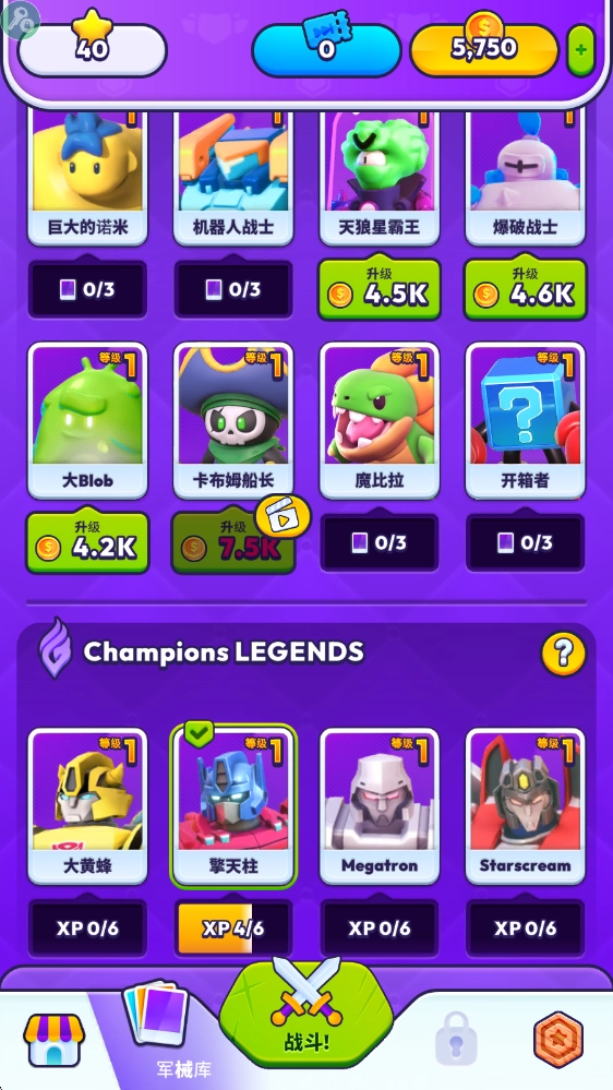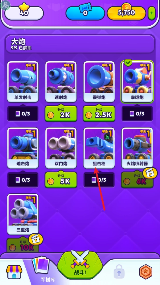 在主界面中,点击下方的军械库进入。