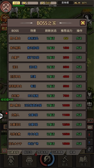 独家BOSS之家,刷新率超快,掉落率超高,稀有BOSS可争夺,一键即可参与!地面满是光柱,更有诸多神装盔甲!