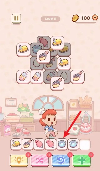 进入烘焙猫游戏后,点击三个相同的物品就能完成消除操作。