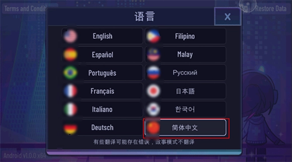 选择简体中文后,回到游戏界面,此时游戏界面应该已切换为中文,你就可以开始体验中文版游戏了。