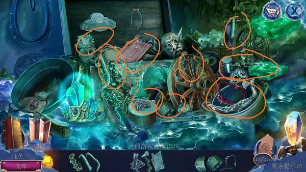 获取圆形标记,将其放置到指定位置,随后获得书籍标志。接着打开小屋书桌上的书,按照要求点击对应的图案。