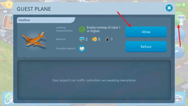 除了起飞外,还可以接收不同的飞机在你的机场降落。