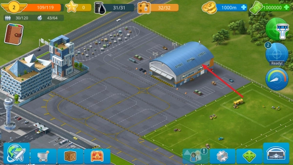 进入游戏后,我们首先可以建设机场以及周边的城市,点击左下角的商店。