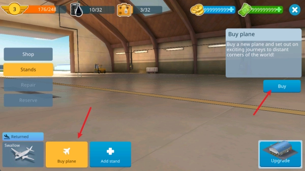 进入后,点击空白的机位即可选择购买新飞机。