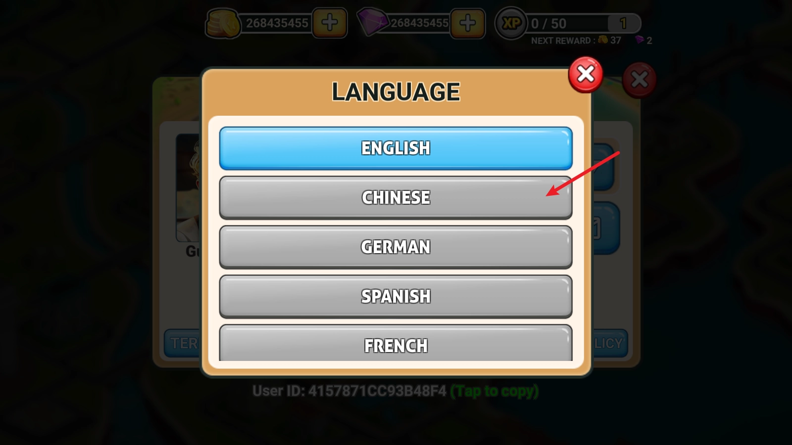 在这里面找到Chinese,点击即可成功切换。