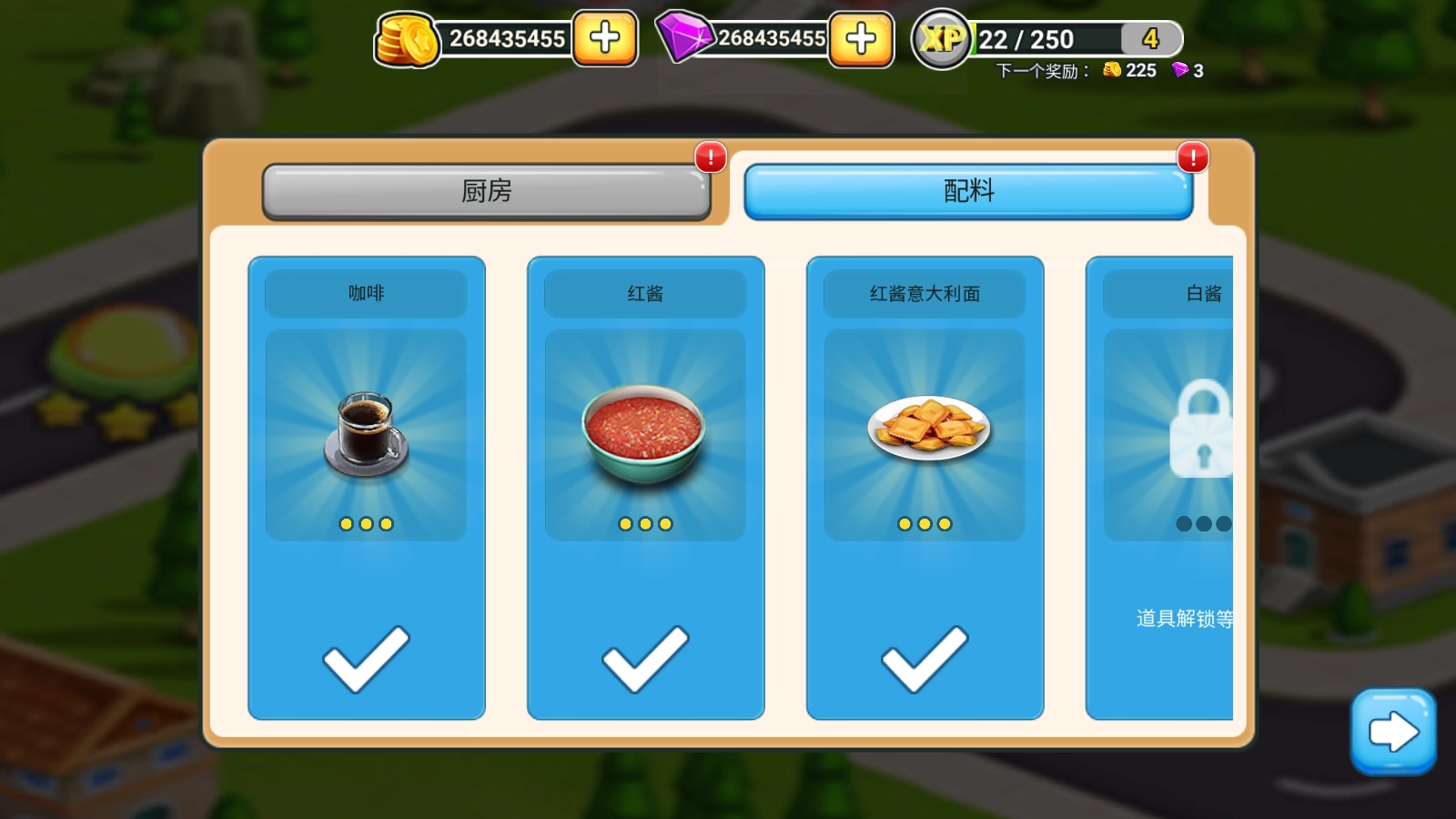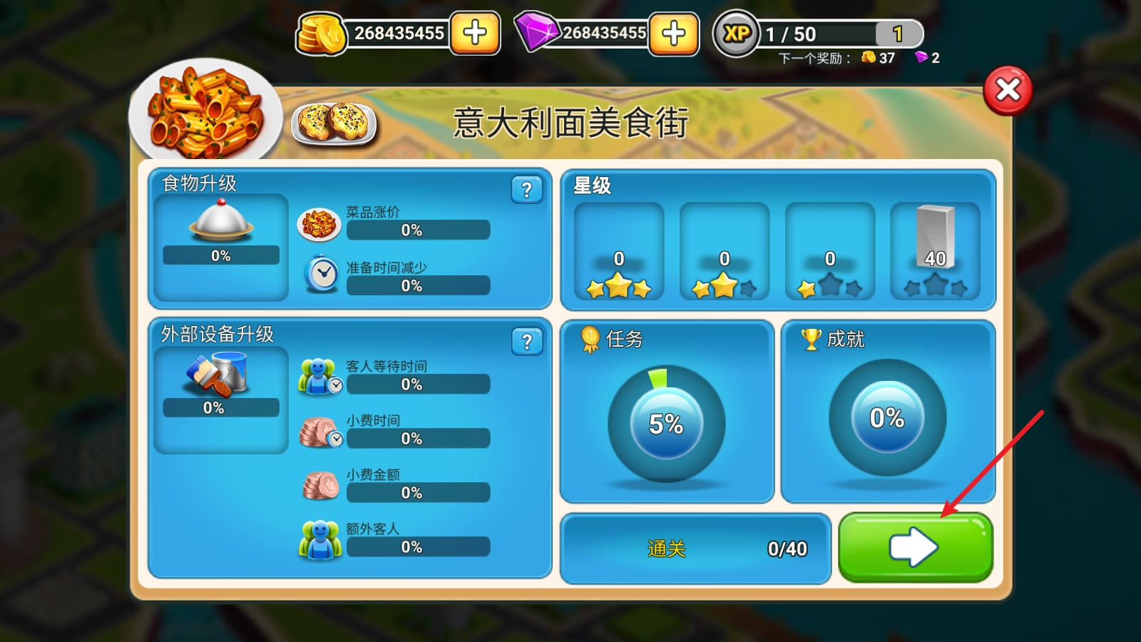 游戏里设置了多种不同主题的餐厅,刚开始需要从意大利面美食街开启挑战。
