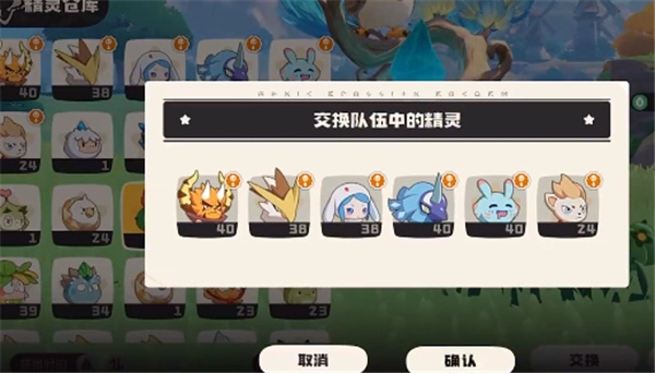 打开背包后,找到里面的精灵仓库,既可以查看里面存放的精灵,也能够调整精灵队伍的配置。