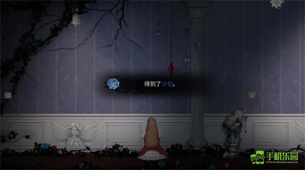 走进玫瑰走廊后,我们先往右边走,右侧的地面上有一把钥匙,把它捡起来。
