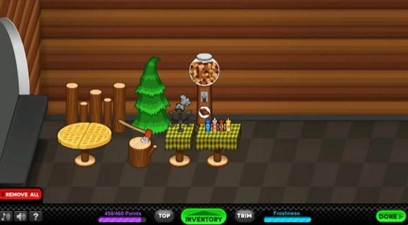 从Web版游戏的发布时间顺序来看,老爹煎饼店是老爹路易所经营的第5家餐厅(也就是系列发布的第5部作品)。这家餐厅坐落在老爹世界观里的枫叶山,店内员工有男员工库珀和女员工普鲁登斯,主要售卖的食品包括美式煎饼/松饼、法式吐司,还有搭配的饮料。