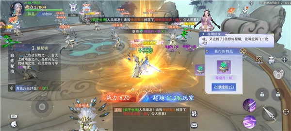 玩家还能在三倍秘境里,借助打怪掉落的经验丹快速提升等级,甚至能达成一颗经验丹升一级的效果。