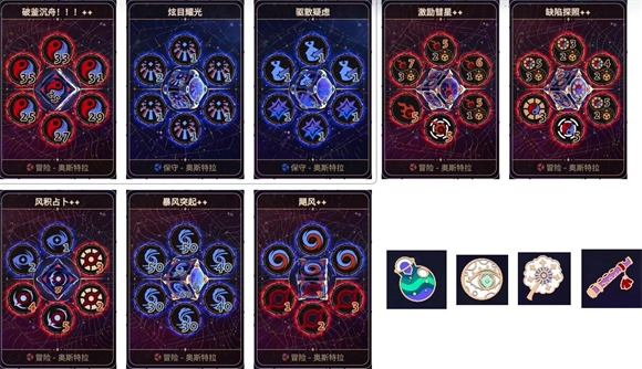 星元流章鱼佬:第一行的四个祝福凑齐能实现无限连,不过其中只有“倒错标记”和“宇宙灵药”是必不可少的,剩下两个都有可以替代的方案。“心之碎片”的效果能用“丰收铭文”来等效替代,而“易变反应”其实是在其他祝福都没抽到情况下的备选,相对来说达成难度较高。“星空面纱”的主要作用是让玩家在第一回合就能启动无限连,这个效果也可以通过各种带刷新功能或者能增加星元的效果来等效实现,要是这些都没有,无非就是启动时间稍晚一些,影响并不大。