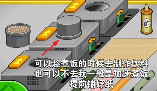 然后开始煮饭,这段时间可以用来制作饮料;通常会加速煮饭进程,并且提前把纸铺好。