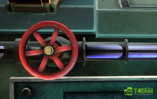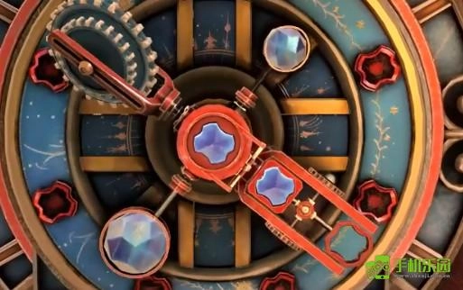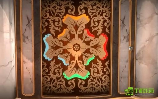 把镜头切换到面具背后的区域,点击中间的装置,转动转盘,使两侧的板块滑进中央的卡位。