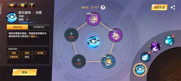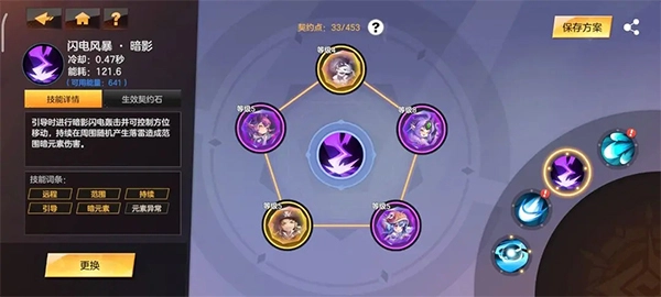 核心技能包括装耗能涌动、炮弹支援、广域扩散、元素异增以及高阶暗影。