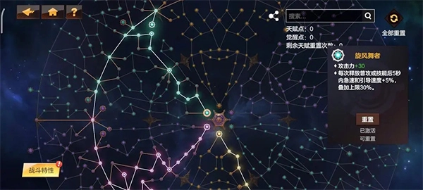 这个时候,我们可以选择往上去点旋风舞者,这样能获得大量引导速度加成,从而提升大量伤害。不过要留意引导速度是否达到上限,毕竟战斗中旋风舞者还会额外增加30%的引导速度。