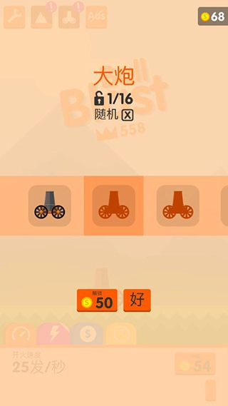 在游戏里消灭小球能获取金币,当金币攒到一定数目时,就能提高开火速度。每秒发射的子弹数量越多,对应的级别就越高,开火速度也会更快,这样就能更轻松地快速清理掉小球。