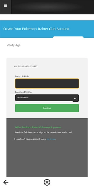 之后进入账号注册页面,点击上方的“Data of Birth”选项来选择自己的生日日期(建议年龄超过18岁),选好后点击“Continue”按钮继续操作。
