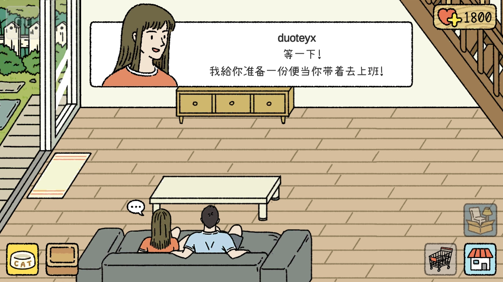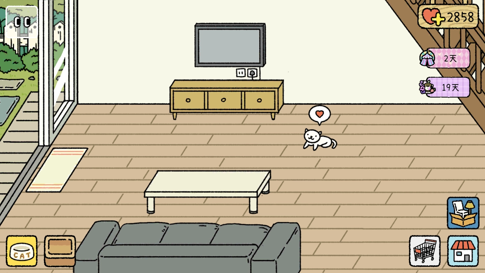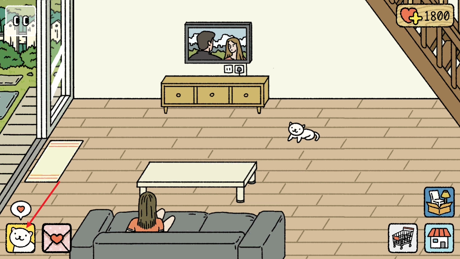 之后小屋里就只剩下一个人了,我们可以逗弄猫咪玩耍,点击左下角的那只猫咪。
