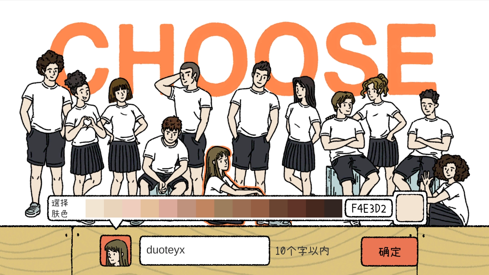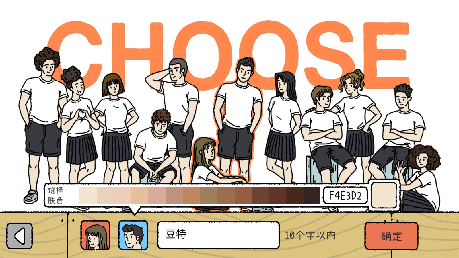 开局我们需要选择一对角色作为主角,并取好名字。