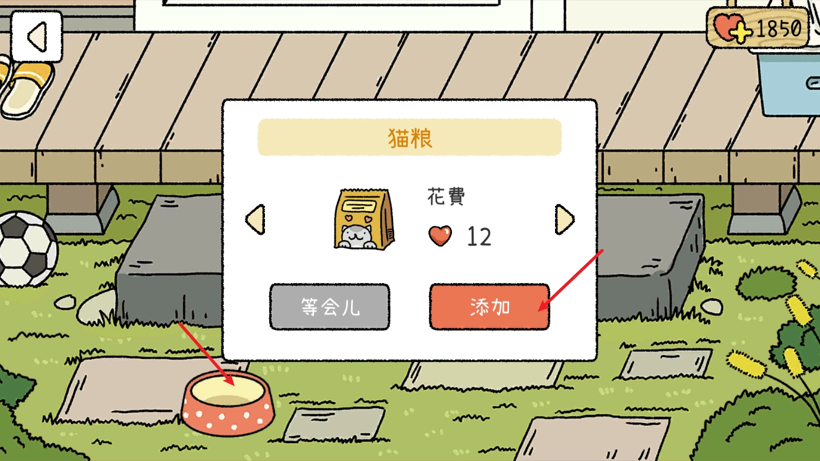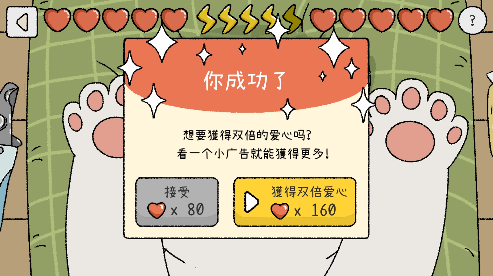 我们可以给猫咪喂食,等时间结束后还能获得爱心奖励。