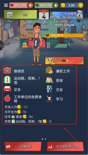 进入游戏后,需要选择初始的发展方向,比如是先通过拾荒来赚取钱财,还是直接去找一份工作。不同的选择会对后续的成长速度和发展路径产生影响。
