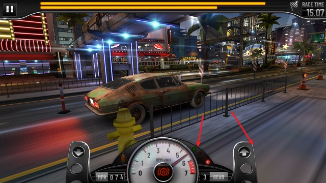 游戏以城市街道为背景,玩家在直线赛道上与对手展开竞速。赛道设计简洁,突出速度感,没有复杂弯道或障碍物,符合直线加速赛的核心玩法。