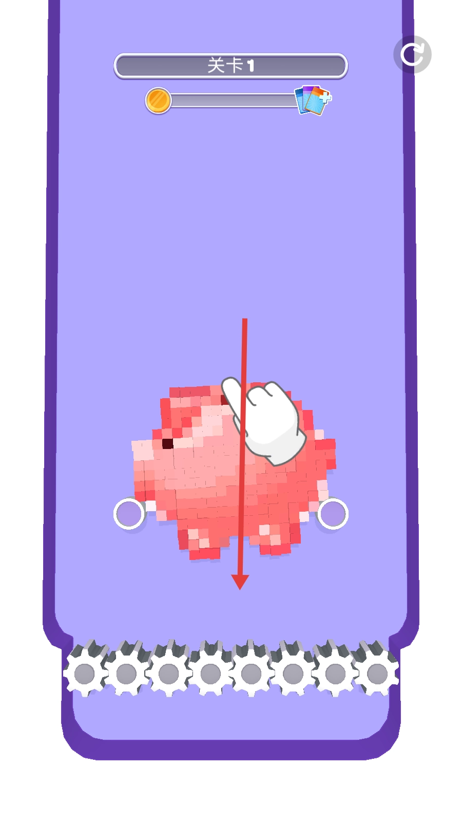 1. 踏入关卡1,依照指引滑动手指,从粉色像素块的中间进行切割,使剩余部分能够顺畅落下。